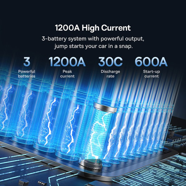 BASEUS Super Energy Pro е многофункционален автомобилен стартов бустер (jump starter) и външна батерия в едно, проектиран за сигурност и спокойствие при пътуване. Със пиков ток до 1600A, висока енергийна ефективност и вградена LED светлина, устройството е надежден помощник при изтощен акумулатор и практично решение за зареждане на мобилни устройства в движение.