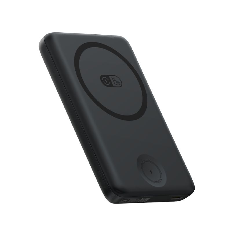 Този power bank с безжично зареждане позволява едновременно захранване на смартфон и Apple Watch. Телефонът се зарежда чрез магнитно Qi/MagSafe до 15W, а часовникът получава стабилно 2.5W зареждане, което го прави перфектно комбинирано решение за Apple потребители.