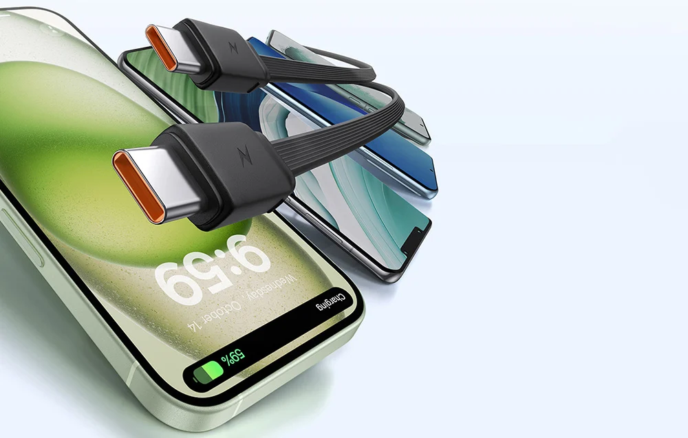 Вградените Type-C кабели елиминират нуждата от носене на допълнителни връзки – всичко необходимо за зареждане