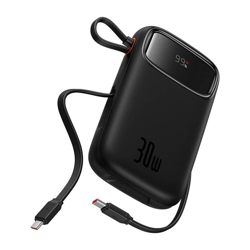 🔋 Външна батерия BASEUS Qpow 2 Power Bank 20000 mAh, 30W + вградени кабели 2C – черен (P10055009113-00)