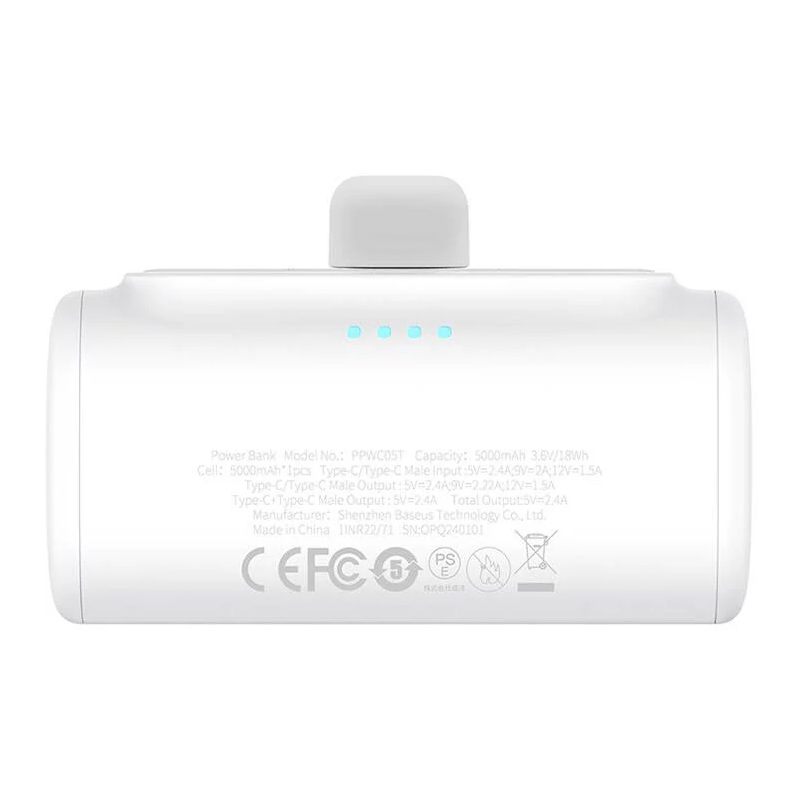 BASEUS Power Bank 5000 mAh 20W USB-C + USB-C P10068306213 е компактна, лека и надеждна външна батерия с Power Delivery, подходяща за модерни USB-C устройства.