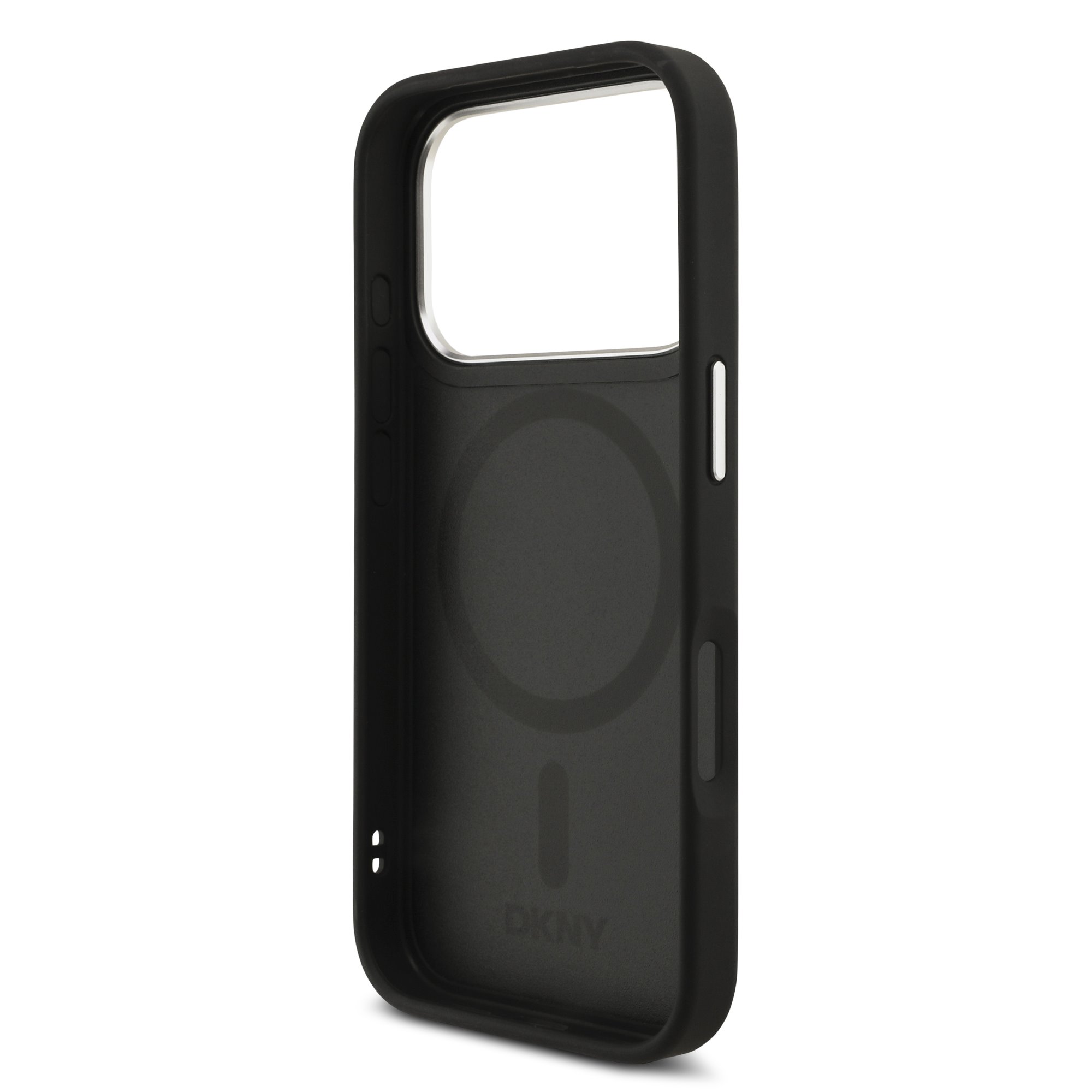 🖤 DKNY Калъф за iPhone 17 Pro, PU Leather Metal Logo MagSafe + Wrist Strap, черен – DKHMP17LPDHWSK