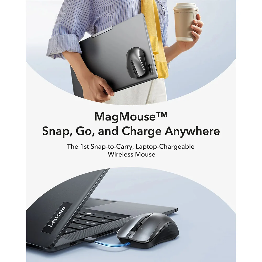 ESR безжичната мишка MagMouse е отлично решение за мобилни професионалисти и активни потребители, които търсят компактна, прецизна и надеждна мишка с интелигентен магнитен дизайн и изключително дълъг живот на батерията за работа, пътуване и ежедневна употреба.