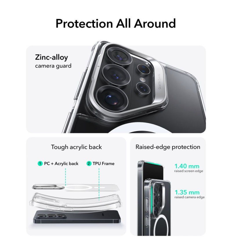 ESR Classic Hybrid е висок клас защитен калъф за Samsung S26 Ultra, създаден за потребители, които искат да запазят напълно оригиналния дизайн на устройството, без да правят компромис със сигурността и функционалността. Този кейс за Samsung S26 Ultra е идеалното решение за всички, които предпочитат изчистена визия, прозрачност и пълна съвместимост с MagSafe аксесоари.
