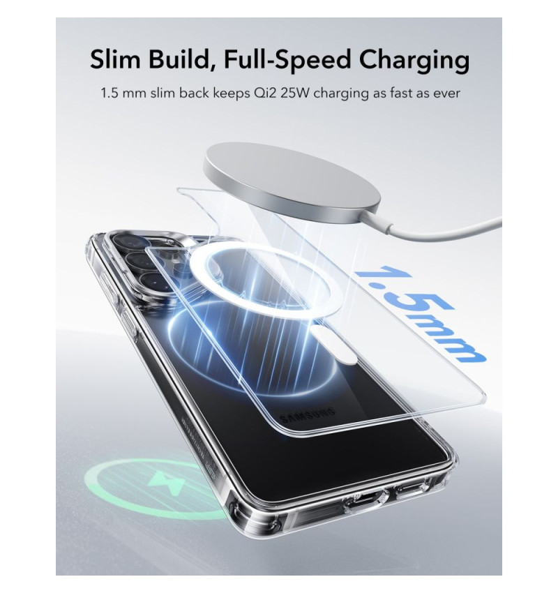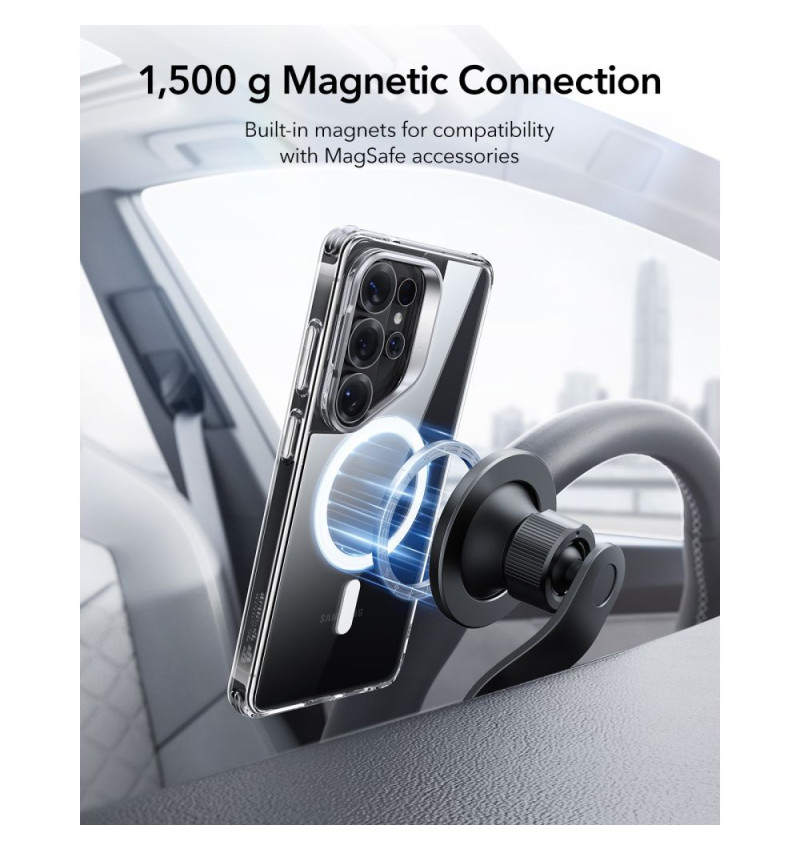 Вградените магнити с мощност 1500g осигуряват стабилно и прецизно подравняване към всички аксесоари в стил MagSafe и ESR HaloLock – безжични зарядни, магнитни батерии, стойки за автомобил и други.