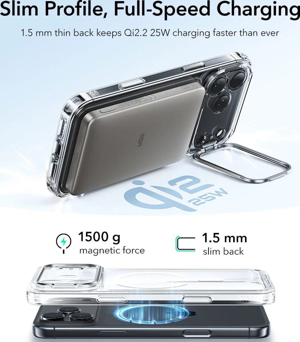 ESR Classic Hybrid разполага с мощни вградени магнити със сила на задържане до 1500g, които осигуряват стабилно и точно подравняване с всички MagSafe и HaloLock аксесоари. Това гарантира сигурно безжично зареждане и стабилно прикрепяне на стойки, портфейли и други аксесоари, без необходимост от сваляне на калъфа. Този iPhone 17 калъф е напълно адаптиран към модерната екосистема на Apple.