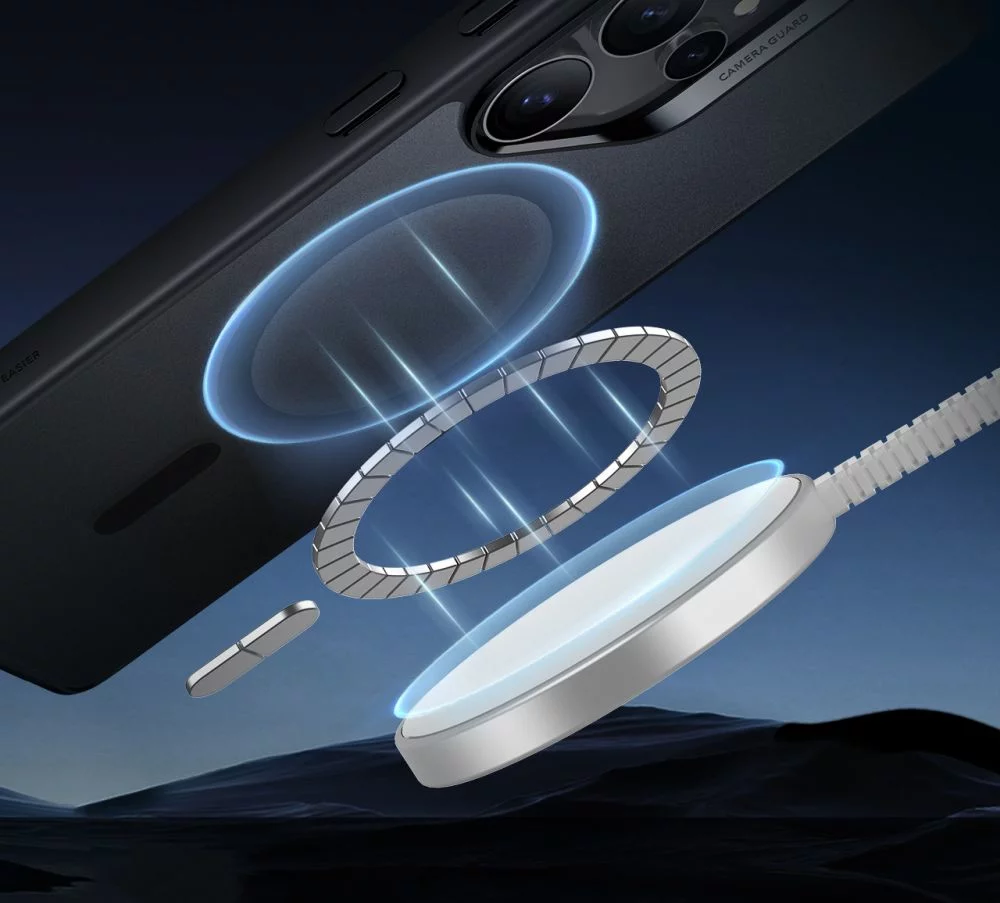 Вградените магнити позволяват стабилно подравняване към безжични зарядни в стил MagSafe, като осигуряват ефективно и сигурно зареждане без нужда от сваляне на калъфа.