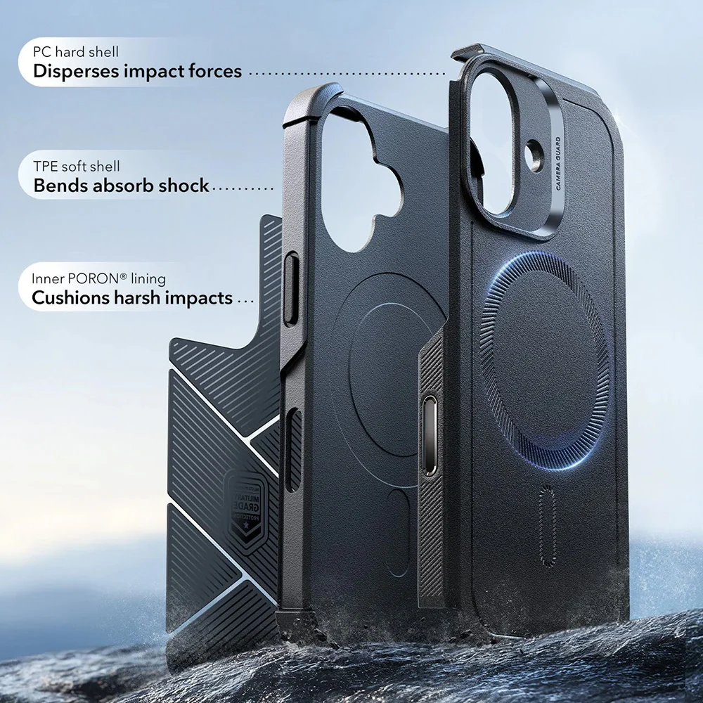 ESR Cyber Tough Armor+ е висок клас калъф за iPhone 17, създаден за потребители, които търсят максимална защита без компромис с функционалността и модерния дизайн. Това е iPhone 17 калъф, разработен с фокус върху устойчивост при удари, сигурност при ежедневна употреба и пълна съвместимост с MagSafe екосистемата. Благодарение на трислойната си конструкция и подсилените защитни елементи, този кейс за iPhone 17 е отлично решение за активен начин на живот, работа в динамична среда и често пътуване.