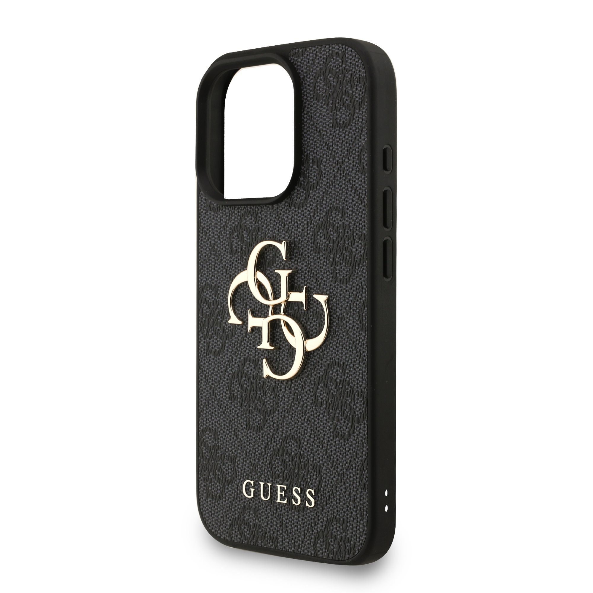 GUESS Калъф за iPhone 15 Pro Max, 4G Metal Logo + Wrist Strap, черен – GUHCP15XP4GMGSK