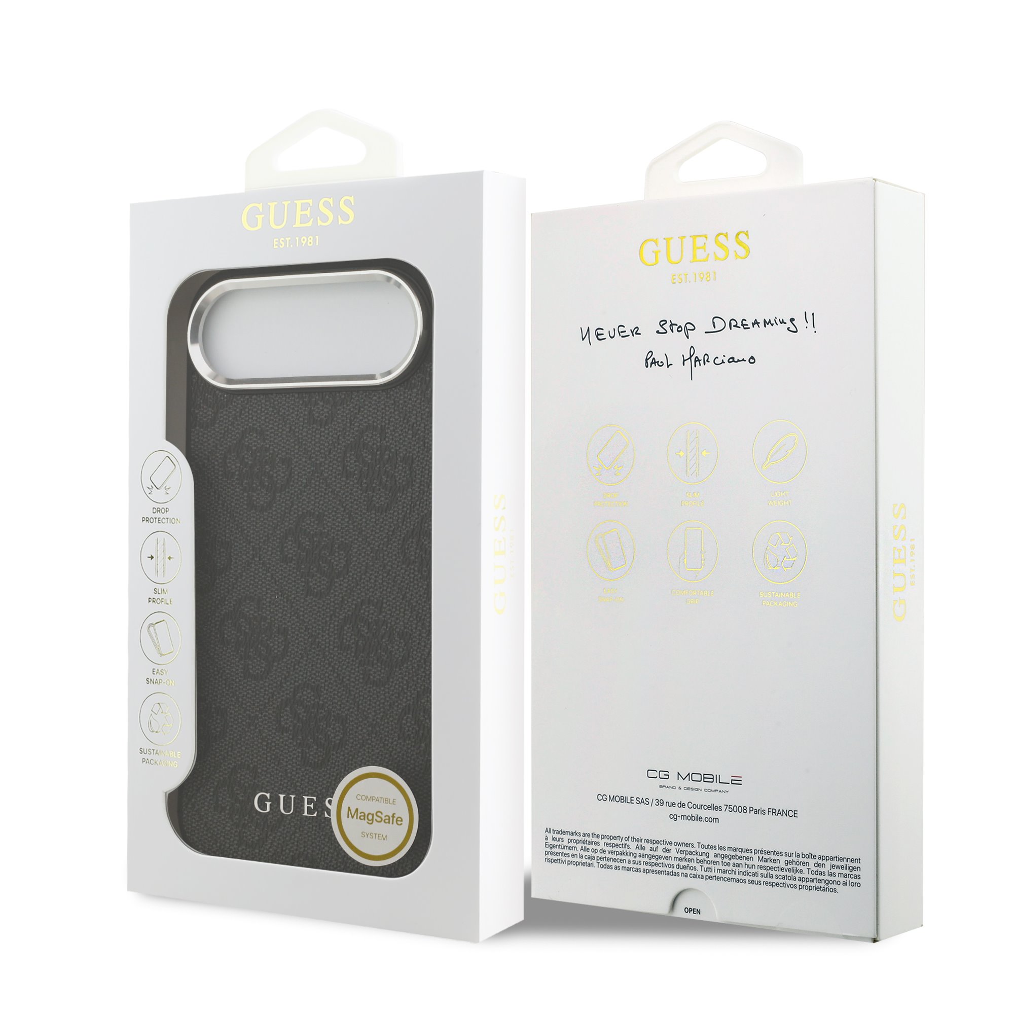 GUESS 4G MagSafe е оригинален премиум калъф за iPhone 17 Air, създаден за потребители, които ценят изчистения лукс, високото качество на материалите и пълната съвместимост с MagSafe аксесоари. Моделът съчетава характерния за марката GUESS стил с практична защита, подходяща за ежедневна употреба.