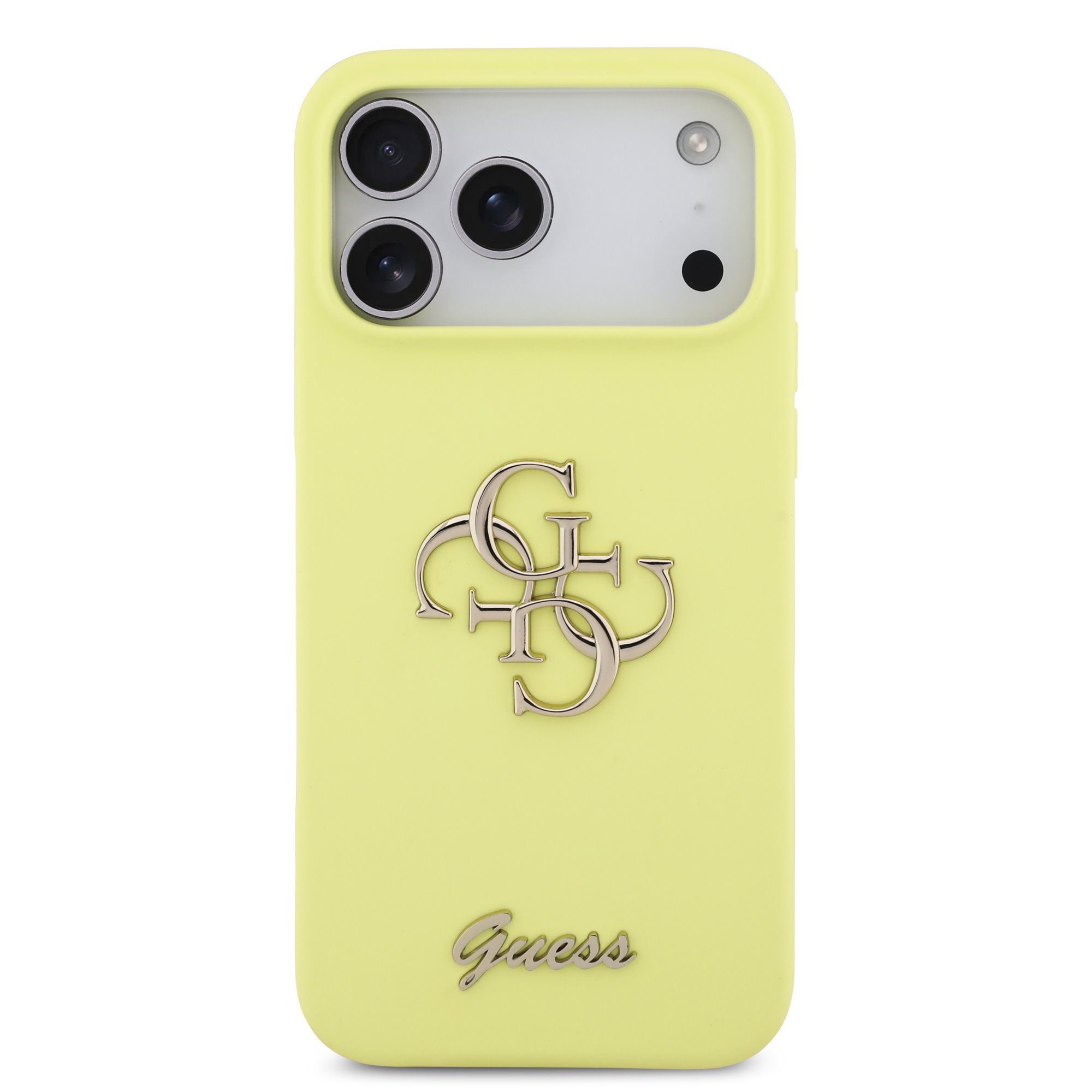 💛 GUESS Калъф Apple iPhone 17 Pro Max Liquid Silicone 4G Metal Logo, жълт – GUHCP17XSC4GLMY – стил, комфорт и защита в едно