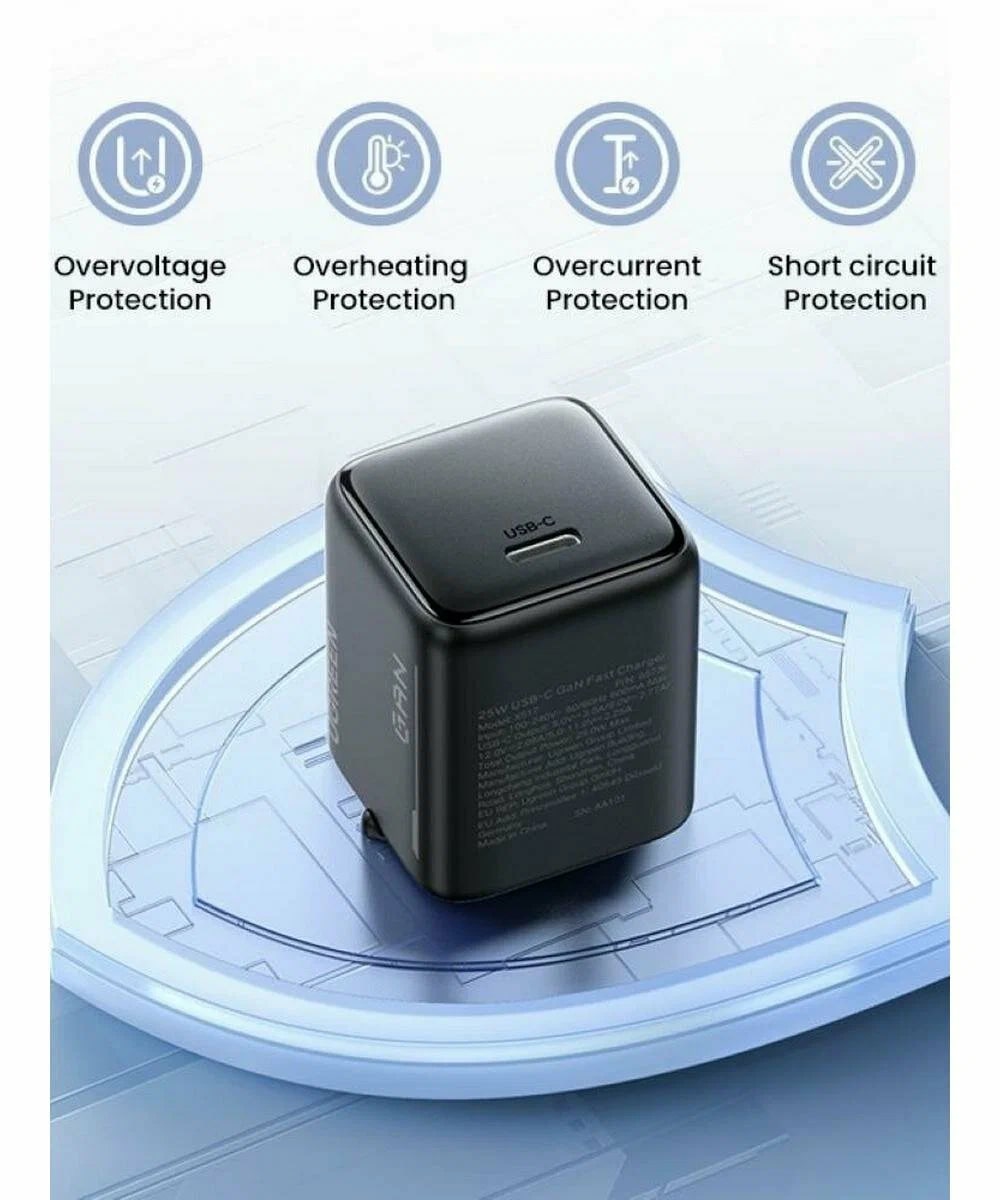 Зарядното осигурява обща изходна мощност до 25W, което го прави подходящо за бързо зареждане на смартфони, безжични слушалки, външни батерии и други USB-C устройства.
