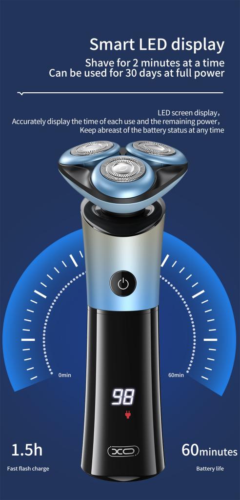 XO CF32 комбинира електрическа самобръсначка и допълнителни приставки за триминг и стайлинг. Това позволява използване на един уред за различни зони и стилове, без необходимост от отделни устройства.