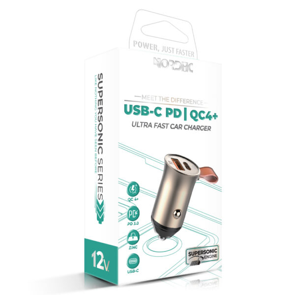 Зарядно за автомобил 12V NORDIC Supersonic 30W, USB-A, USB-C + USB-A към Type-C кабел